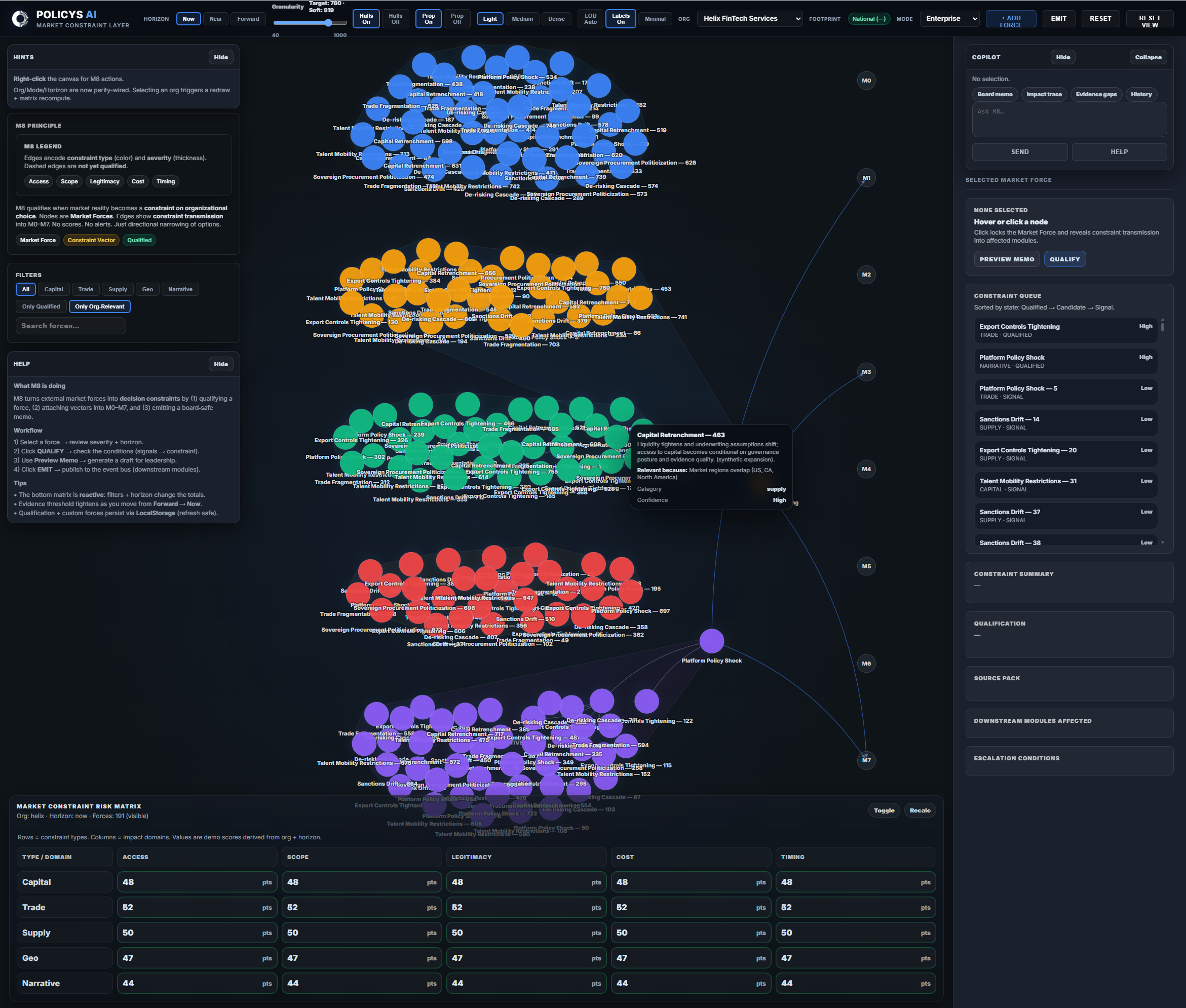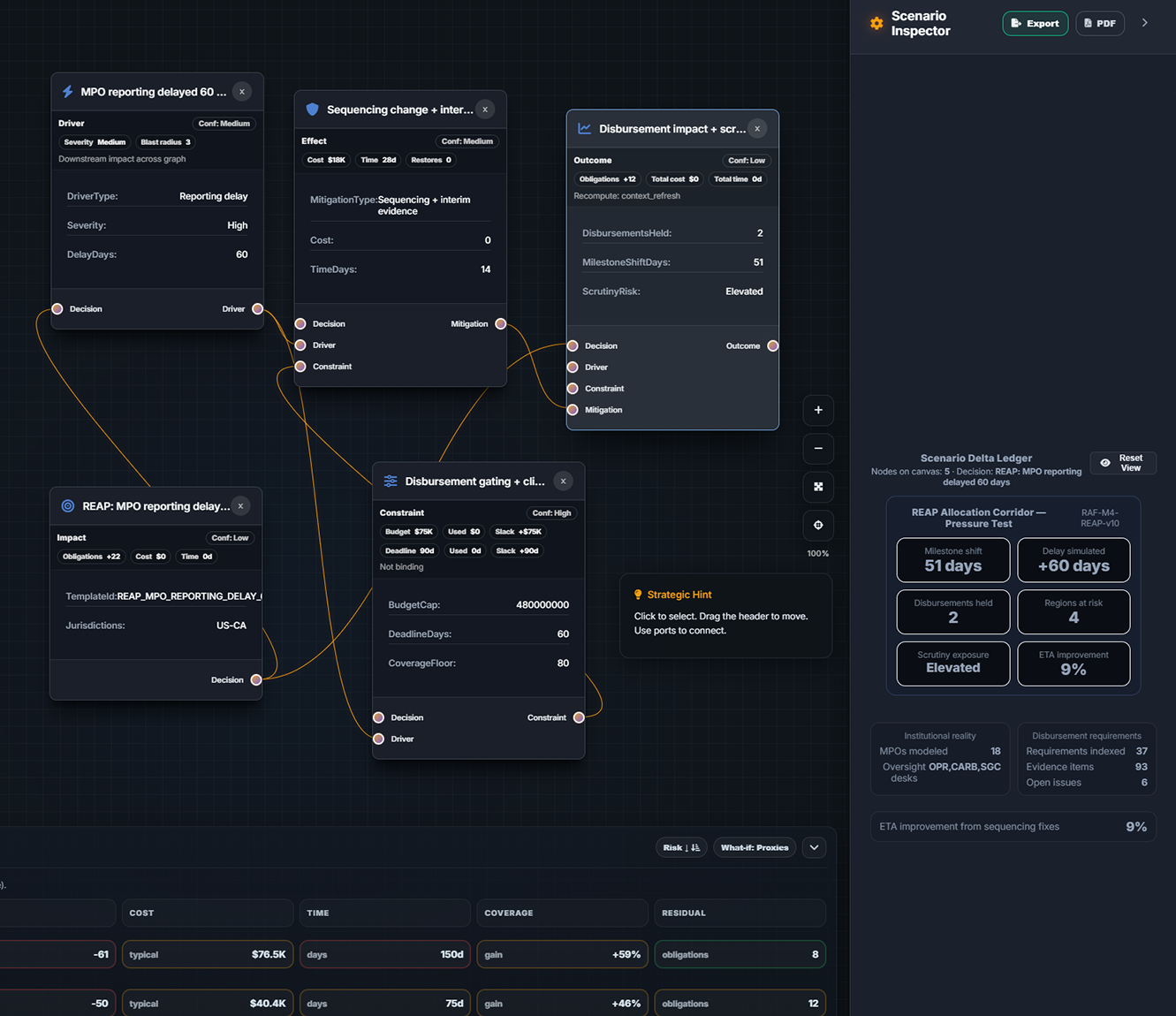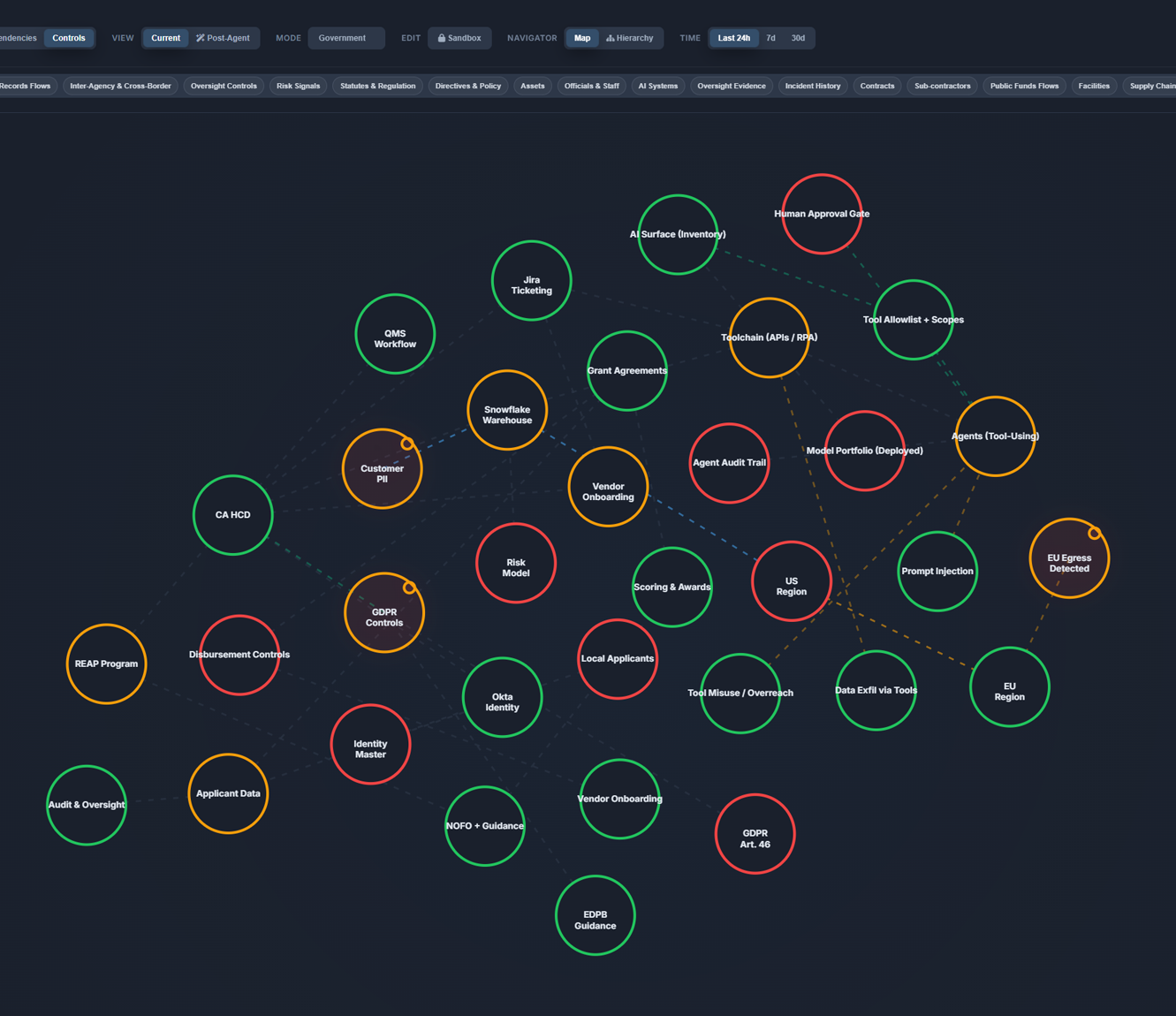 Structure policies, systems, and actors into a computable authority model. • Unified authority graph • Jurisdictional scope mapping • Delegation and oversight structure